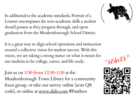 The Moultonborough School District has embarked on the process to create a Prek-12 Portrait of a Learner this school year as a way to encompass…
