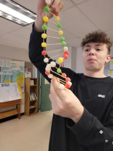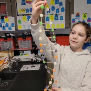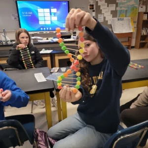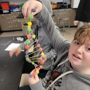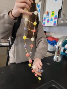ML 7th Grade Science students have been participating in a Genetics unit! They recently assembled DNA double helix models representing five human traits and later exchanged DNA fragments to try to identify the code of a specific person.